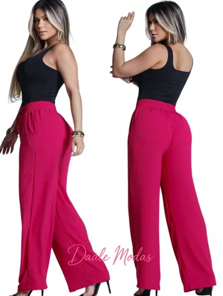 Calça Pantalona Feminina Cintura Alta com bolso tecido Duna Wide Leg Tendência